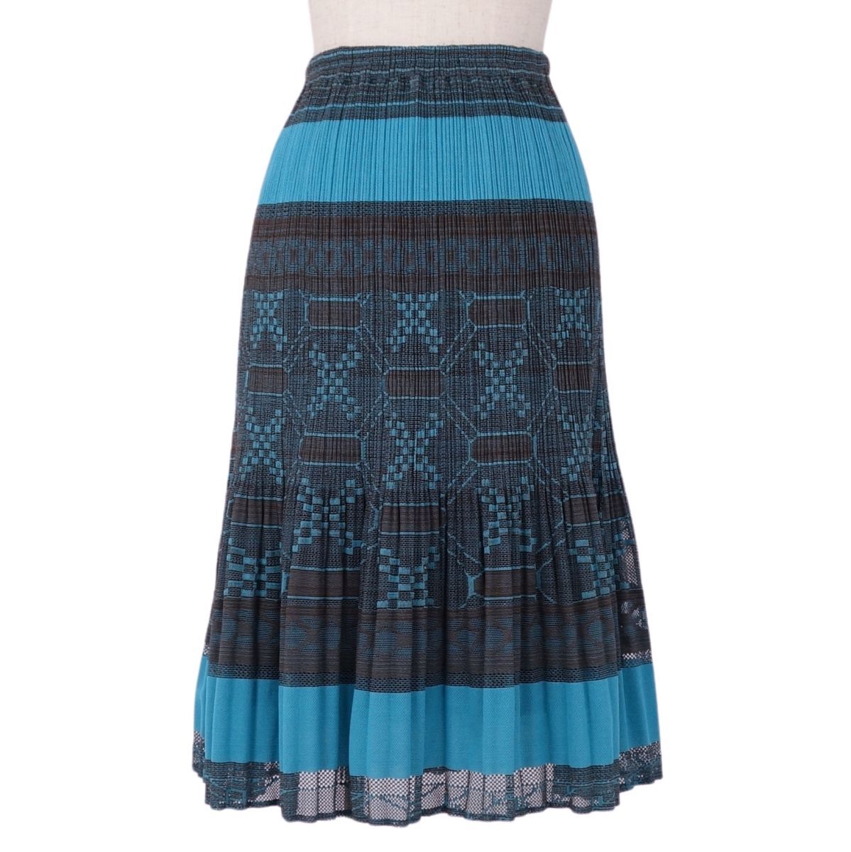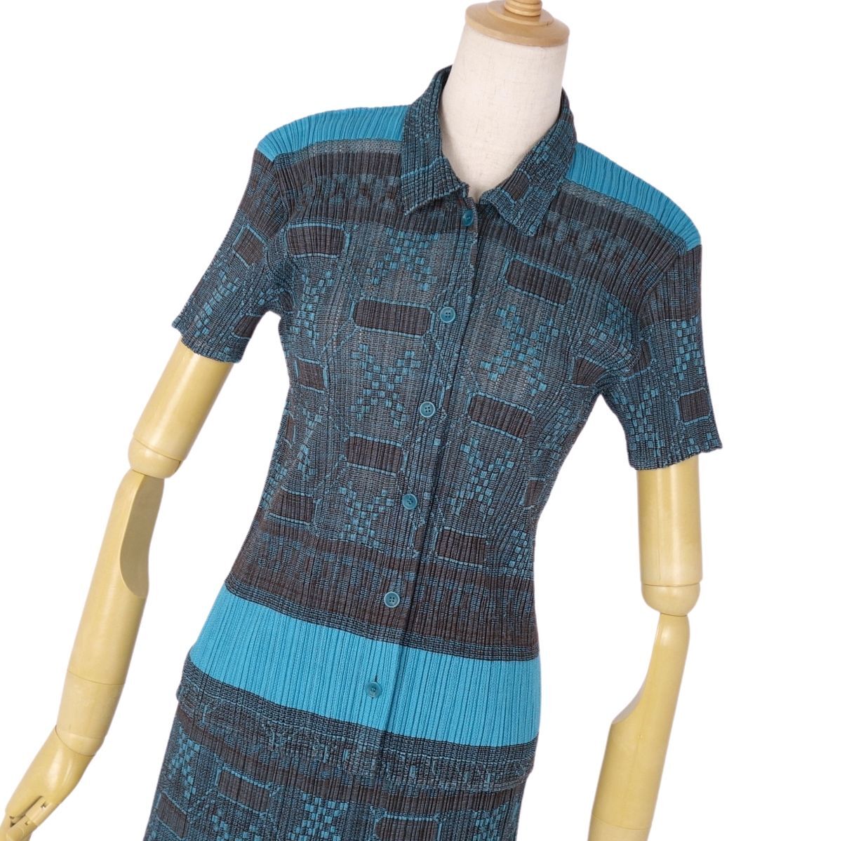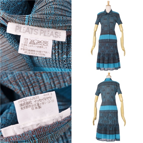 | 極美品 プリーツプリーズ イッセイミヤケ PLEATS PLEASE セットアップ スカートスーツ 総柄 プリーツ 3ターコイズブルー |