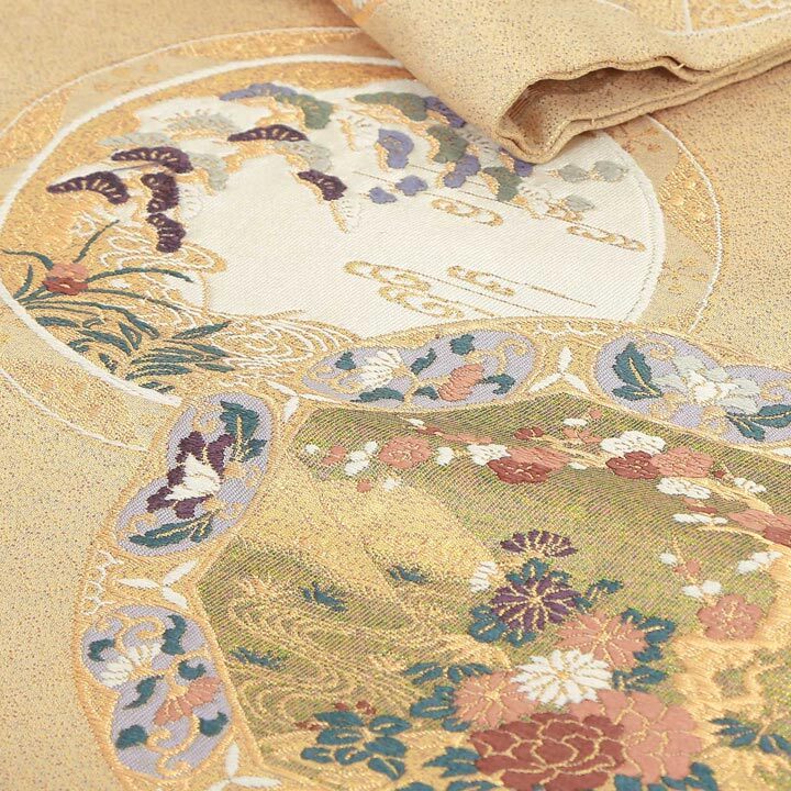 (中古品)仕立て上がり 名古屋帯 「皿絵文様 砥粉色」八寸名古屋帯(メール便不可)