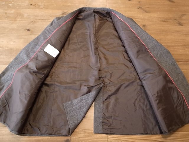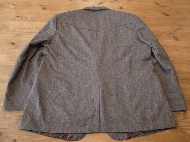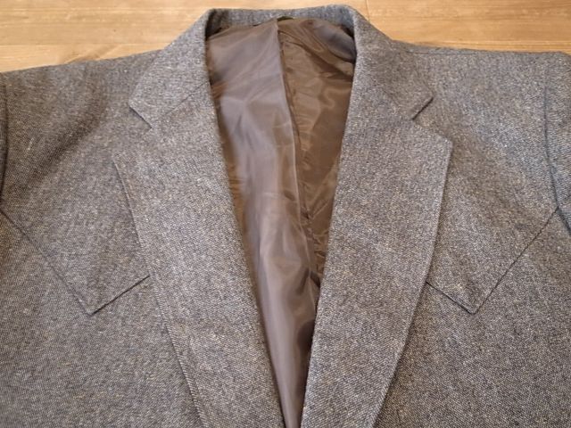 ◆ブランド 「Grand Entry」 アメリカ古着 ●サイズ表記 50R 実寸サイズ 5XL(6L)相当 肩幅…52cm(肩先から肩先の間の長さ) 身幅…66cm(両脇を横直線に結んだ長さ) 着丈…78cm(後衿ぐり中央から後身頃裾) 袖丈…66cm(袖付けの肩先から袖先) ※平置き状態での素人採寸ですので、多少の誤差はご了承ください。 ●素材…ウール 薄手のツイード素材 ●色…黒×グレー×茶など ●ポケット… フラップポケット ●裏地…総裏仕立て ●ベント…センターベント ●製造国表記…なし ●状態…使用感は少ない美品です。 ★送料 全国一律 700円 佐川急便 (北海道900円 沖縄その他離島1700円) ※複数ご購入の場合、同梱発送可能です。 |