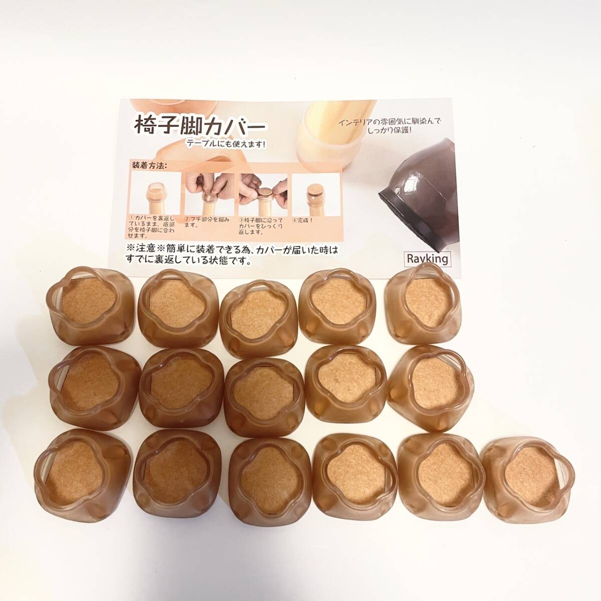 RAYKING 椅子脚カバー 16個セット 椅子脚キャップ シリコン 椅子足キャップ 椅子足カバー イス足カバー チェアカバー フローリング 丸脚 角脚兼用 正方形 長方形 イス脚カバー 傷防止 滑り止め 騒音防止 床キズ 防止 フェルト (正方形S%カンマ% ブラウン)
