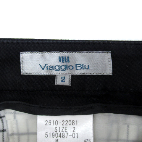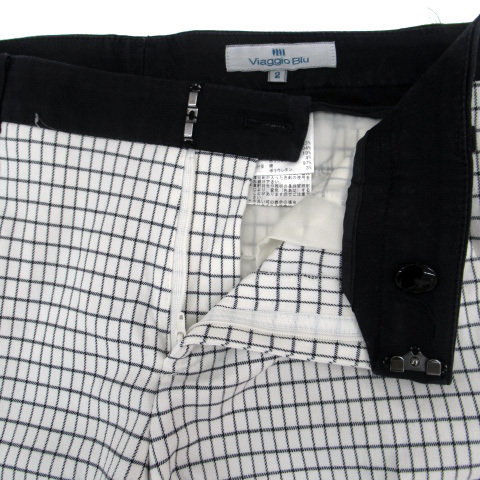 ビアッジョブルー Viaggio Blu テーパードパンツ アンクル丈 グラフチェック柄 2 白 ホワイト 紺 ネイビー /SM10 レディース