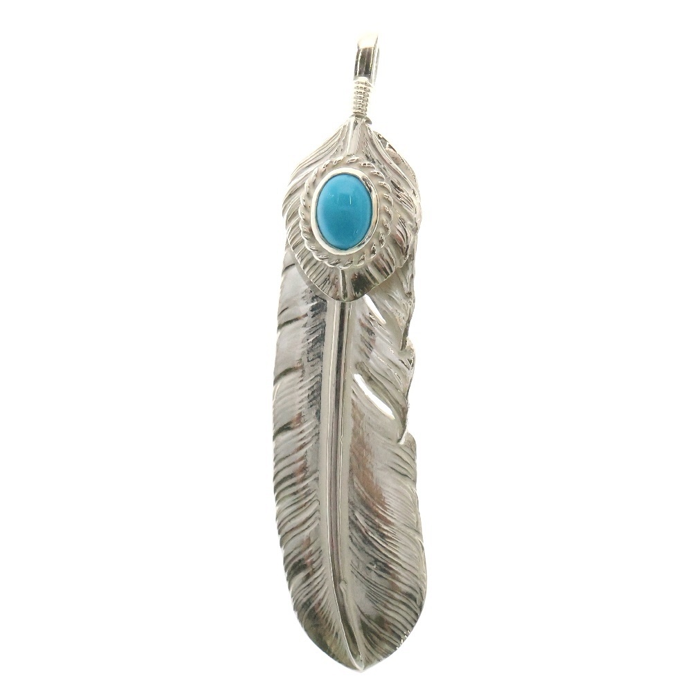 goro's ゴローズ 【新品】【現行】上銀銀縄ターコイズ特大フェザー 左向き ペンダントトップ シルバー/ゴールド