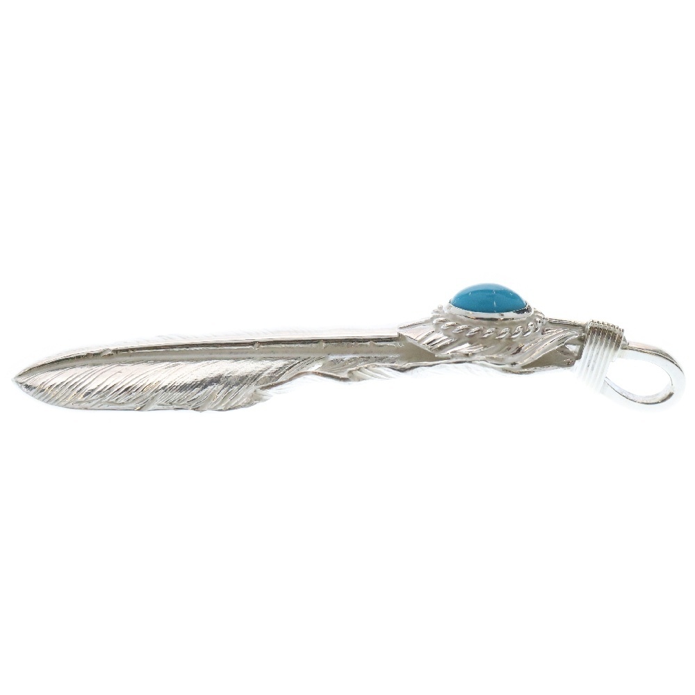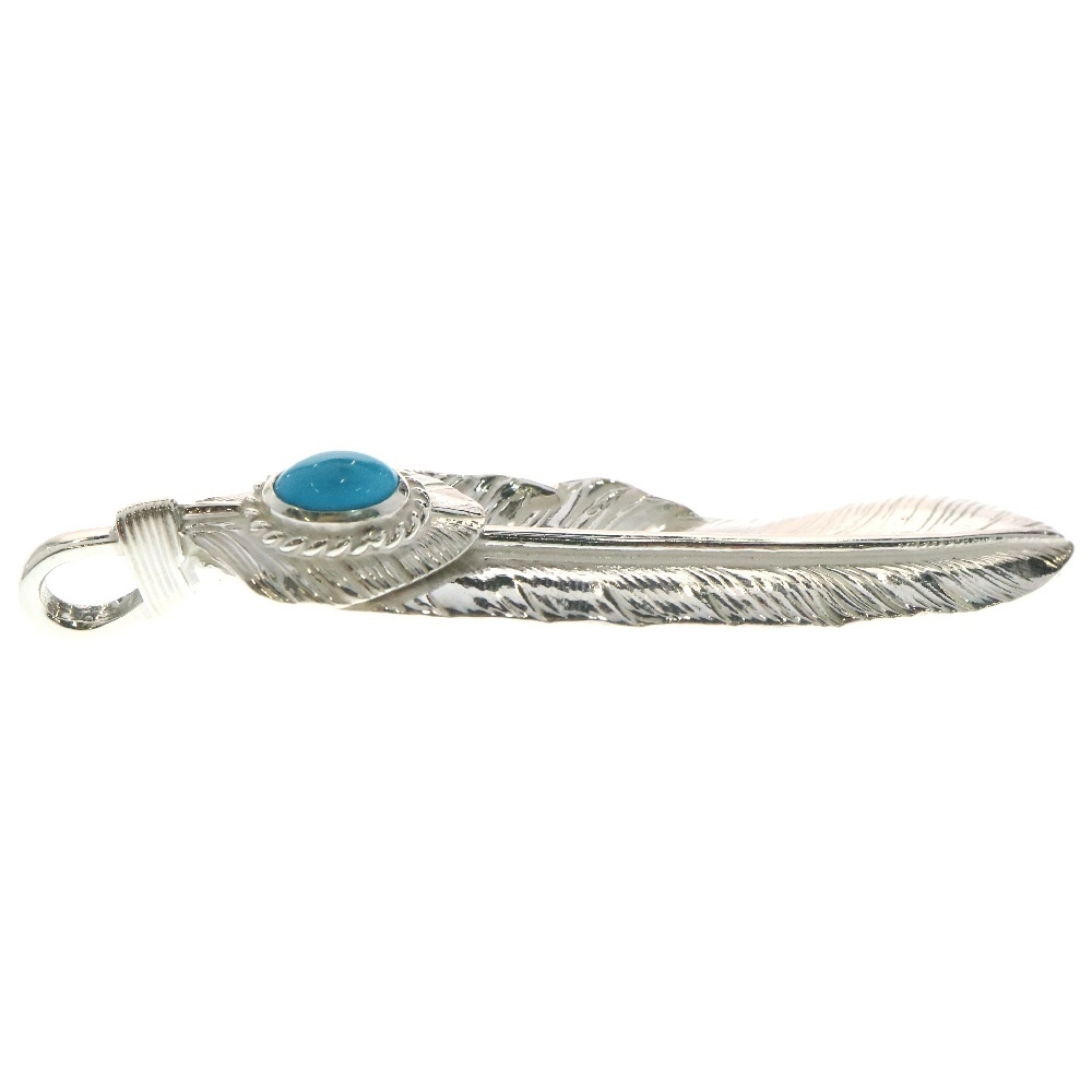 品名【新品】【現行】上銀銀縄ターコイズ特大フェザー 左向き ペンダントトップ シルバー/ゴールド