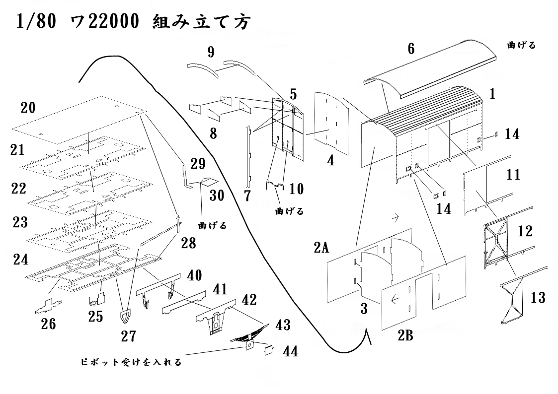 1/80のワ22000(前期型)のレーザー切り抜き済みペーパーキットです。