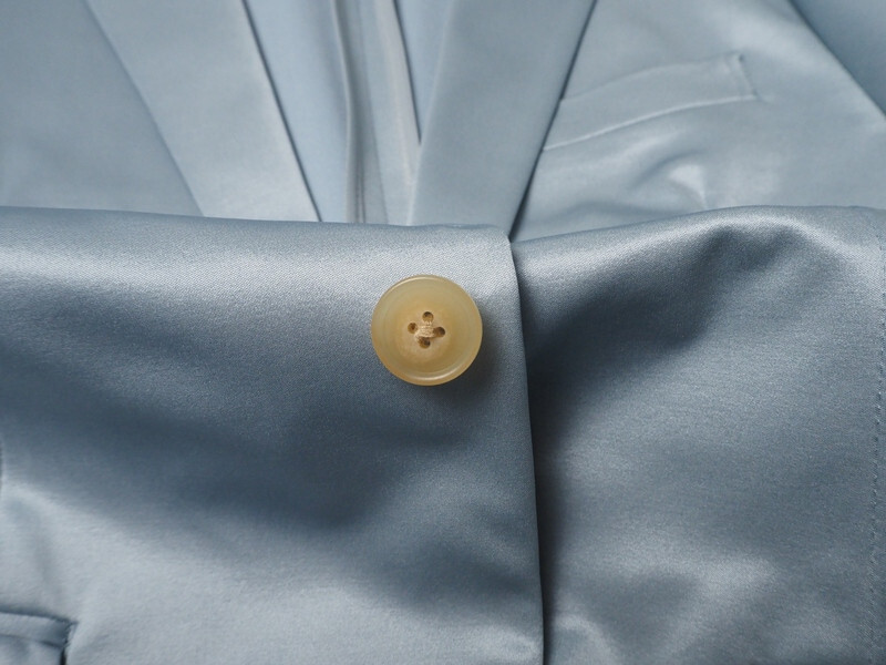 艶感のあるナチュラルストレッチ素材のセットアップスーツ。肌触りが良く高級感のある仕上がりになっています。素材の良さを活かしたベーシックなデザインとカラーでコディネートに馴染みやすく、普段使いにぴったりです。