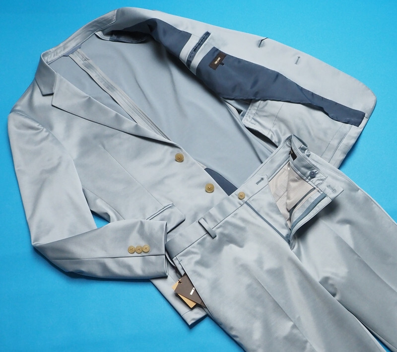 新品定価7.5万円 COMME CA MEN コムサメン 春秋 艶感 セットアップ スーツS水色(23) 15JG01