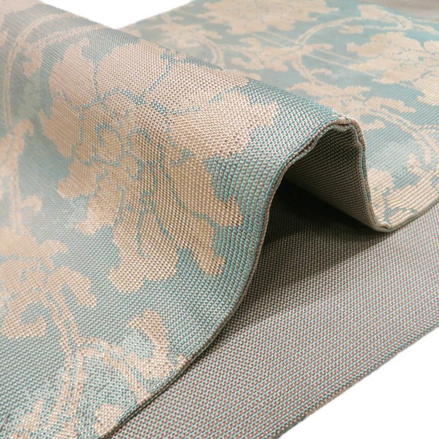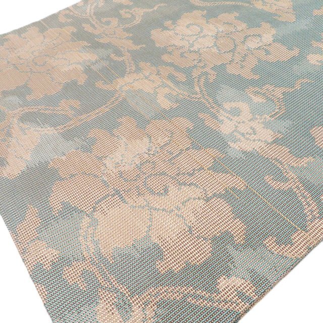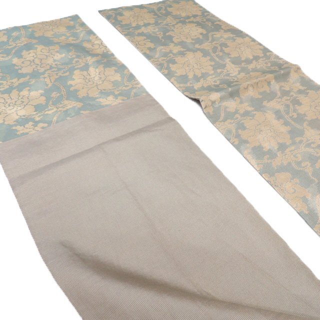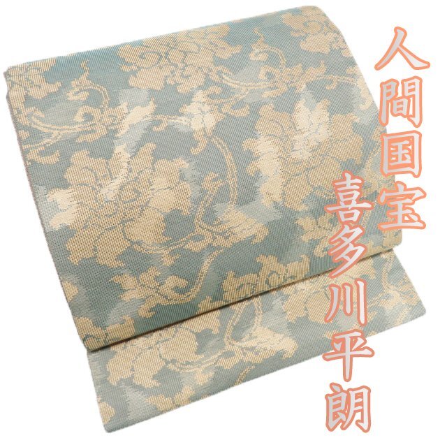 サイズ 367.5cm x 31cm 素材 正絹 商品ランク B お色 薄緑色 麦藁色 金糸 昭和時代の染色工芸家であり、重要無形文化財「有職織物」の保持者、【喜多川平朗】氏。 昭和31年、「羅」(網目状の透けたからみ織りの薄地の絹織物)の再現による人間国宝に認定、さらに昭和35年には「有職織物」によっても人間国宝に認定され、2つの技術保持者となりました。 正倉院裂などの古典染織の研究と復元につとめた氏の作品、是非お手に取ってご堪能くださいませ。 使用感の少ない、美しいお品物です。 少し保管臭が残っています。気になる方はご購入をお控えください。 写真に写っている帯のみの販売で、小物等の付属品はついておりません。 一部商品は実店舗・他サイトでも並行して販売しておりますので売り切れの際はご了承ください。 その他多数販売中 guho- | ||||||
