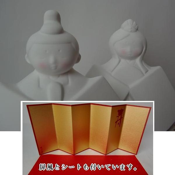 無地の人形に、着色すれば自作の雛人形が完成します。 屏風にシートも付いておりますので、そのまま飾ることが出来ます。 素焼きのままですと絵の具の乗りが悪いので、白色絵の具でベースを塗っております。 クレヨン・マーカー・色鉛筆での着色が可能です。 アクリル絵の具での着色がオススメです。 頬塗りは難しいので、既に施しております。 (3枚目の画像を参照して下さい。) セット内容 1 お内裏様 約11cm(陶器) 2 お雛様 約11cm(陶器) 3 屏風 4 シート 保育園・幼稚園・学校の教材にいかがですか? 20個以上ご購入のお客様には、特別価格をご用意しております。 数量・価格等、遠慮なくお問い合わせ下さい。 |