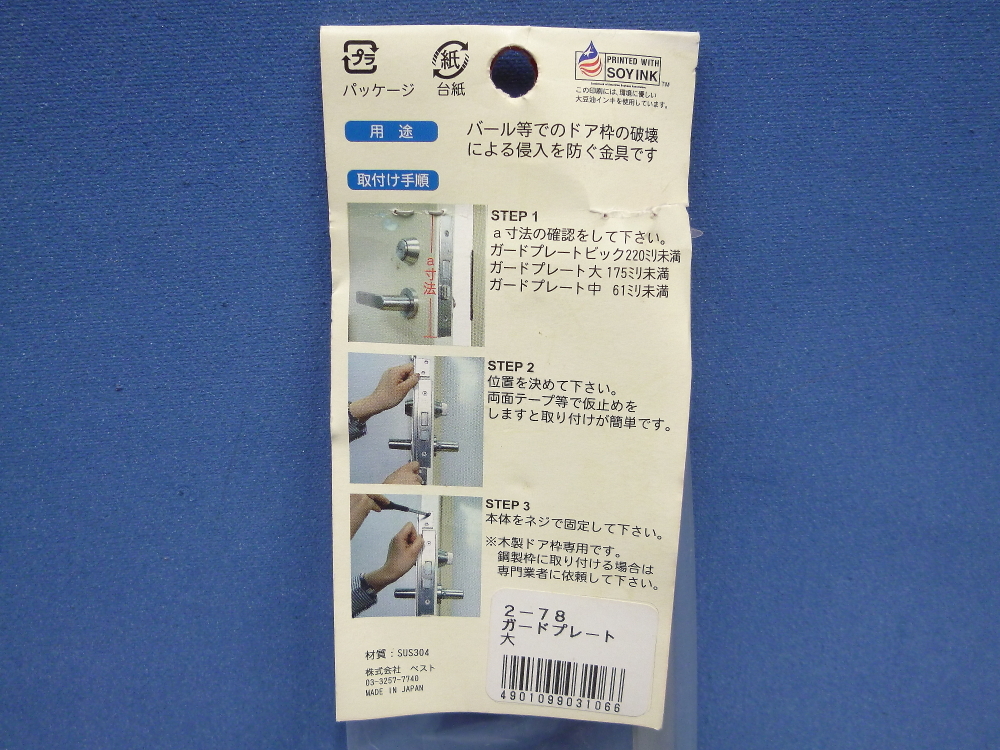 ベスト ステンレス ガードプレート 大 2-78 未使用 破壊行為の対策に ドア