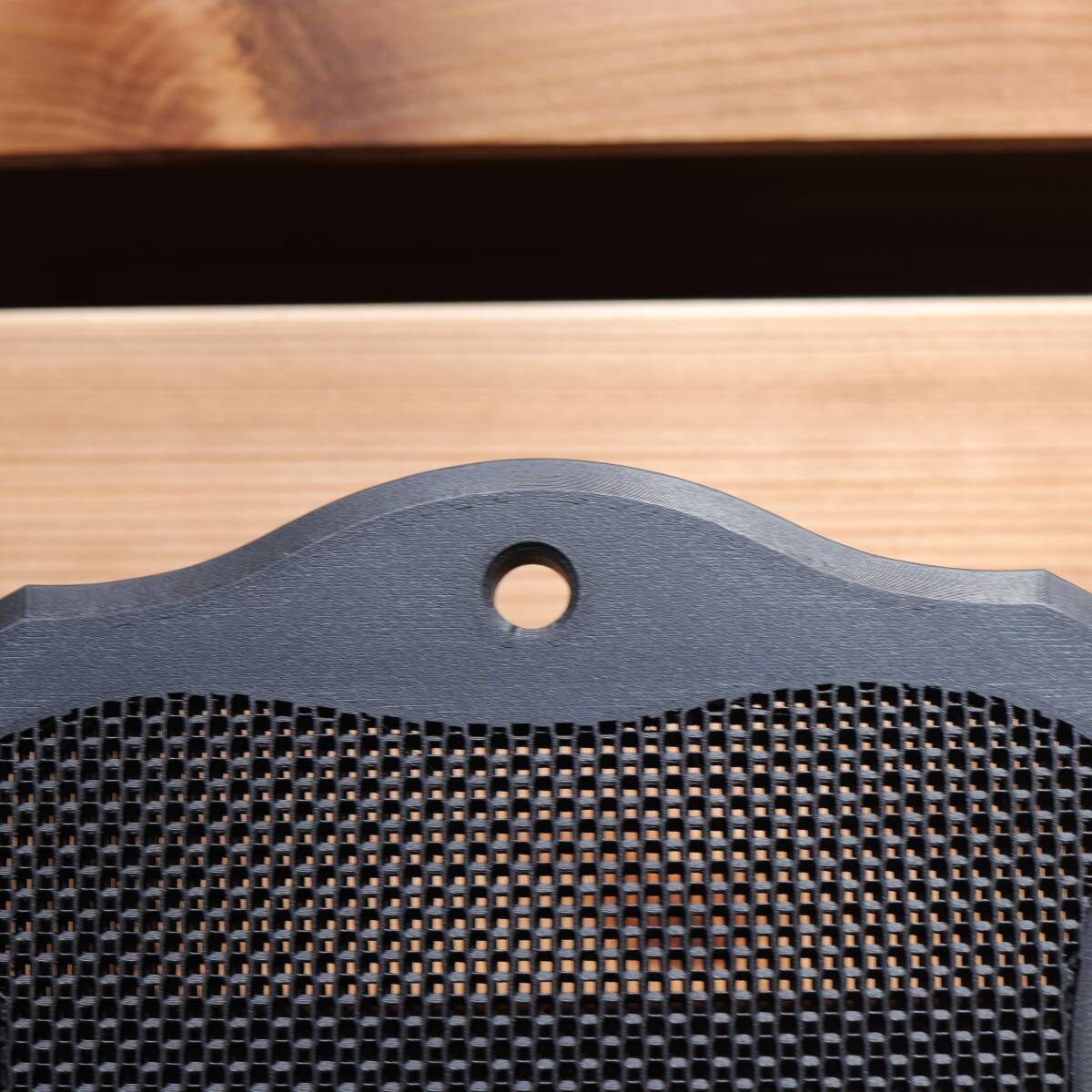 裏面に巻きつけ作業性アップの横溝、結束バンド用の穴、通気性を確保するヘゴ風板