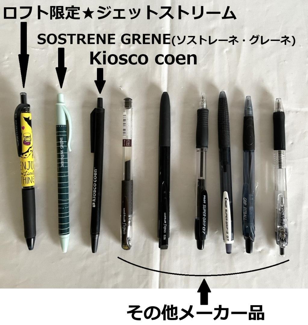 レア系は、「ロフト限定★ジェットストリーム」「Kiosco coenのボールペン」、2020年に日本から撤退した北欧のプチプラ雑貨店「SOSTRENE GRENE(ソストレーネ・グレーネ)」のボールペンなど、現在では入手困難なものになります。