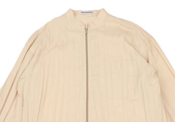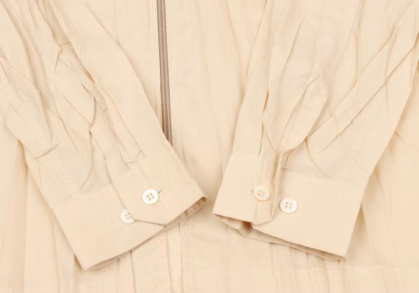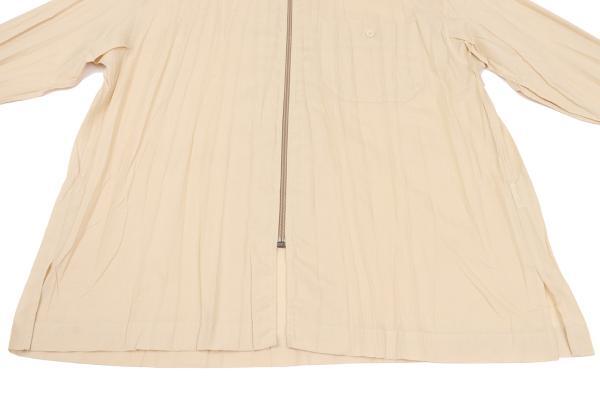 イッセイミヤケ メンISSEY MIYAKE MEN シワプリーツバンドカラージップアップシャツ ベージュM |