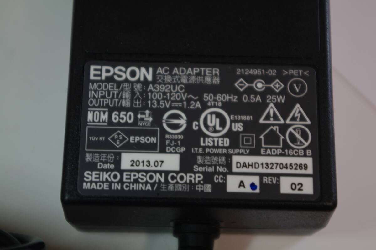 EPSON エプソン Colorio スキャナー GT-F730 GT-S630 純正 ACアダプター A392UC センタープラス 13.5V 1.2A ピン有り ■JHC10