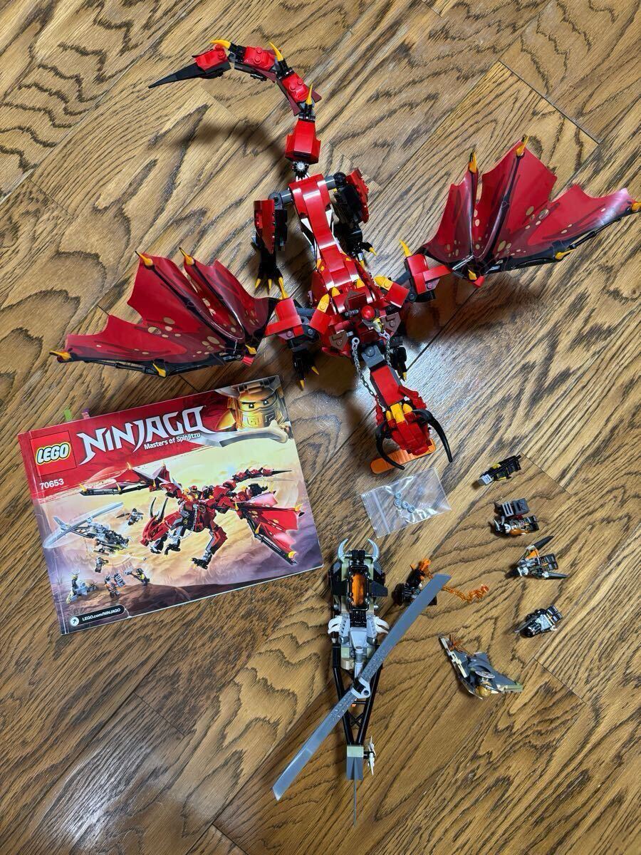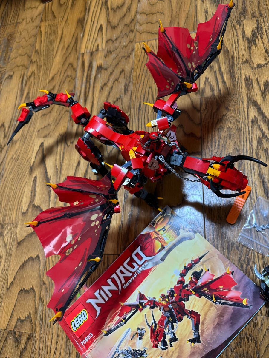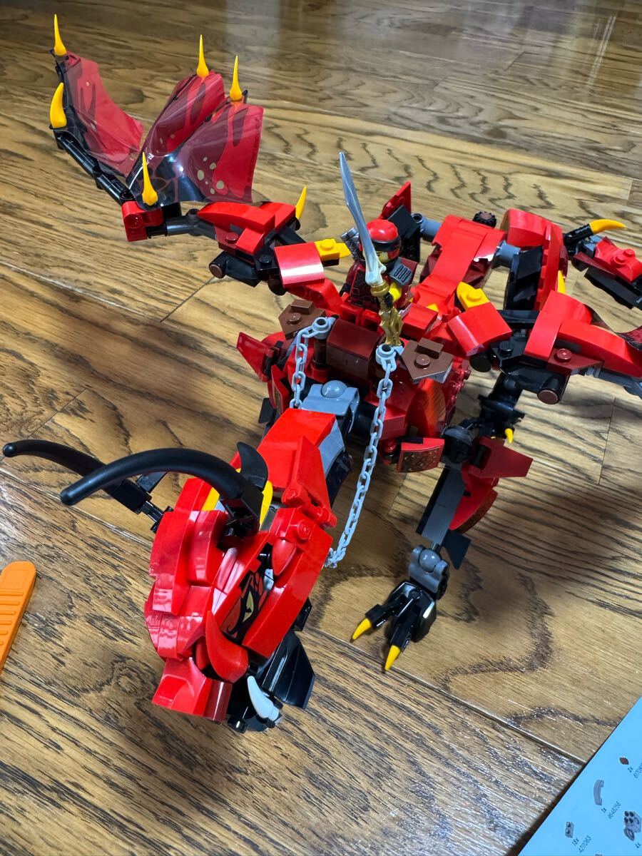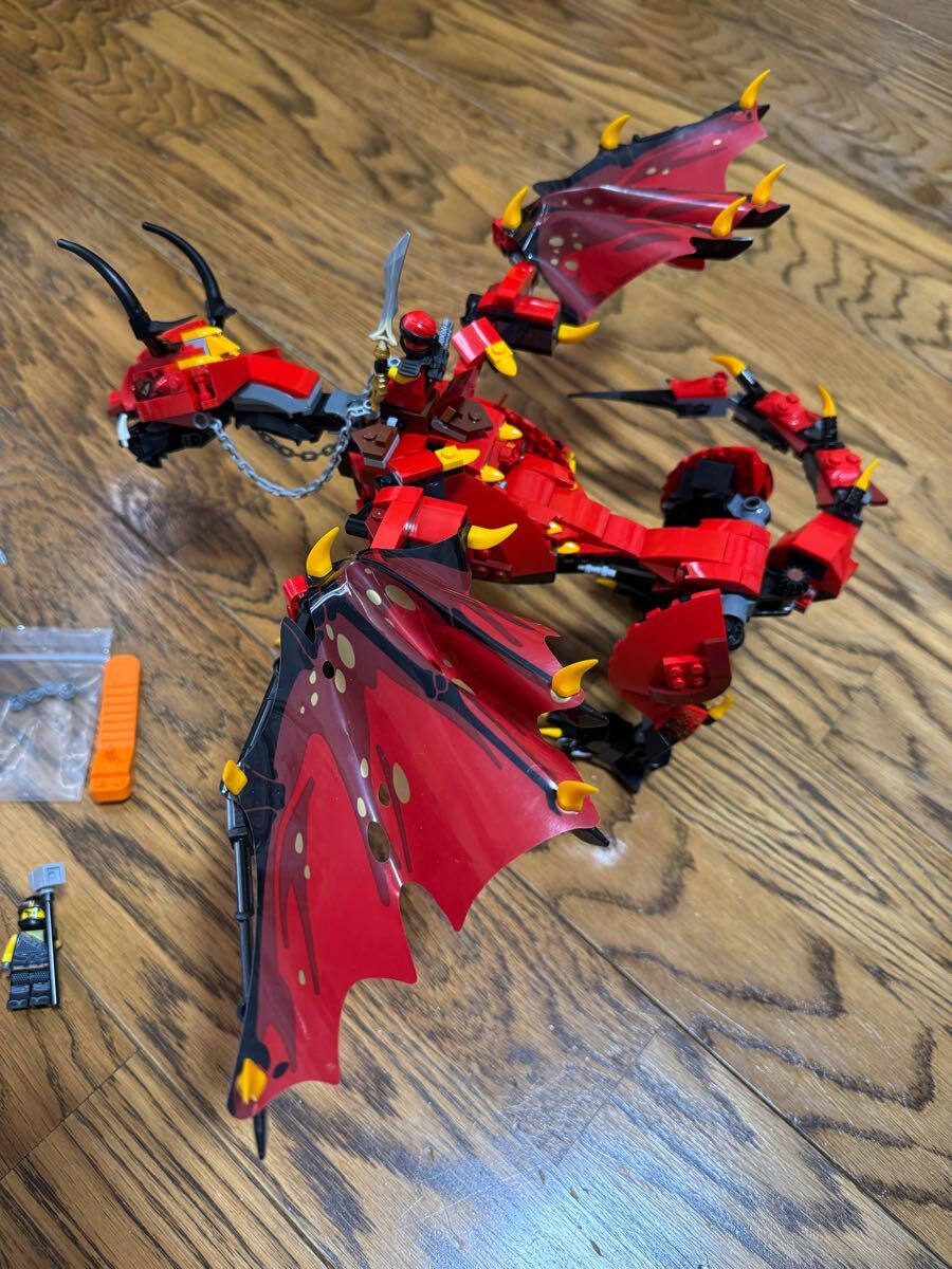 迫力のあるドラゴン、尻尾が滑らかに動き、羽もある程度開閉可能。脚の角度を変えることができ、首や顔(顎や角)も動かせます。