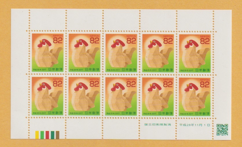○【年賀切手】平成29年用・酉《82円》 伊予一刀彫 十二支 酉  切手シート 2016年  未使用