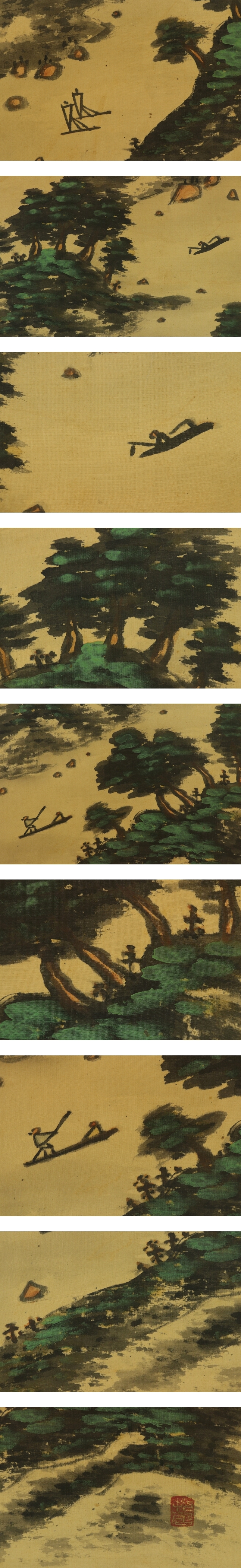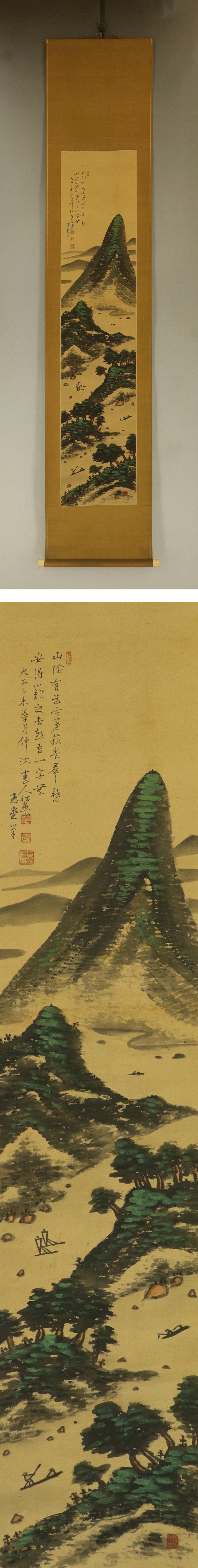 | №2502039【模写】川合玉堂【青緑山水之図】◆絹本◆共箱◆掛軸 | |