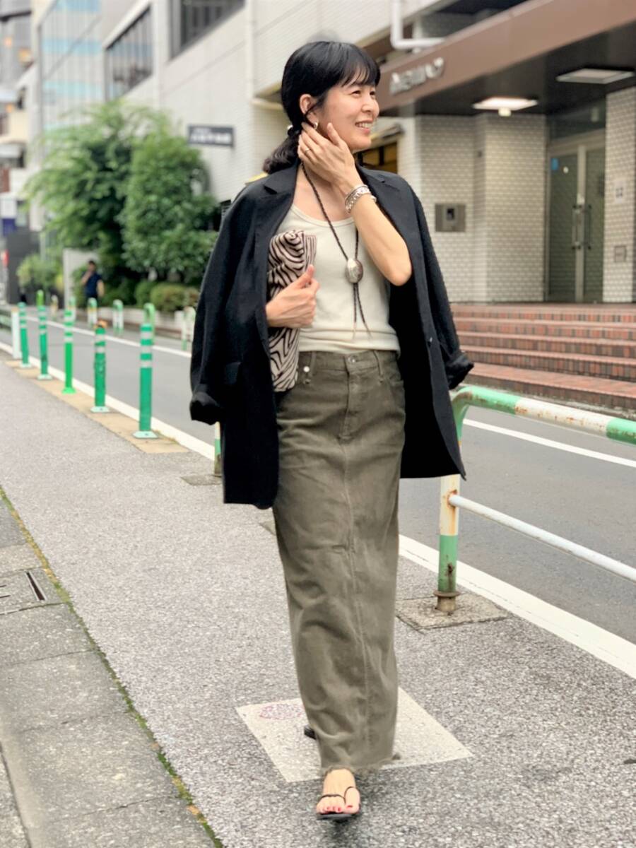 これまでパンツのみだったUPPER HIGHTSに、コーデュロイスカートをスペシャルオーダー。 適度なストレッチ感と穿きこむほどに馴染みの出てくるコーデュロイスカートは、今から秋冬まで大活躍する1枚です。 穿いた時のラインにも拘り、ヒップにはフィット感を持たして、裾にかけて少しだけ広げて女性らしいラインが出るようにしています。 スリットも足捌きはしやすくも、膝上まで露出しすぎないようにと、細部までこだわっています! |