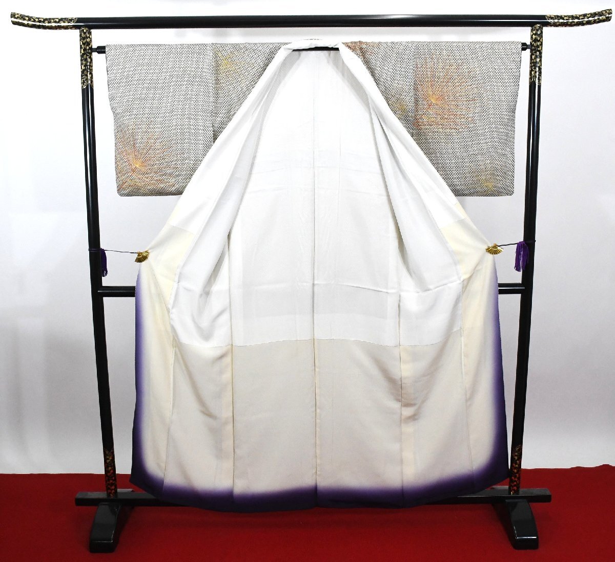 | サイズ | ▼身丈 (背中から) 154cm ▼裄丈 64cm ▼袖丈 49cm ▼後巾 30.5cm ▼前巾 25cm |