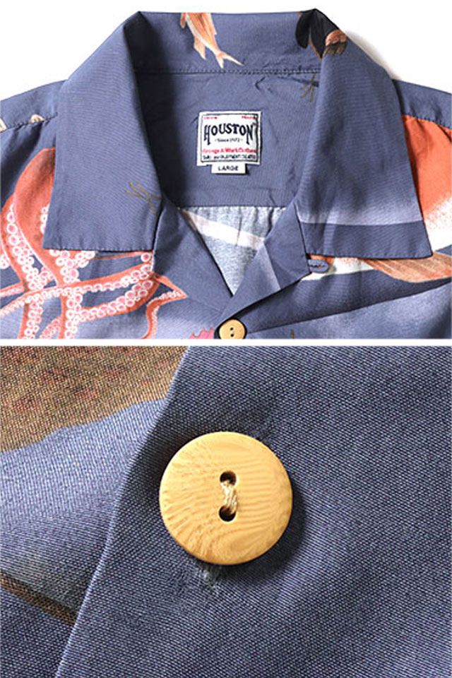 | 日本製コットンレーヨンアロハシャツ「伊藤若冲・魚尽くし」◆HOUSTON HOU-M01151 | |||||||||||||||||||||||||