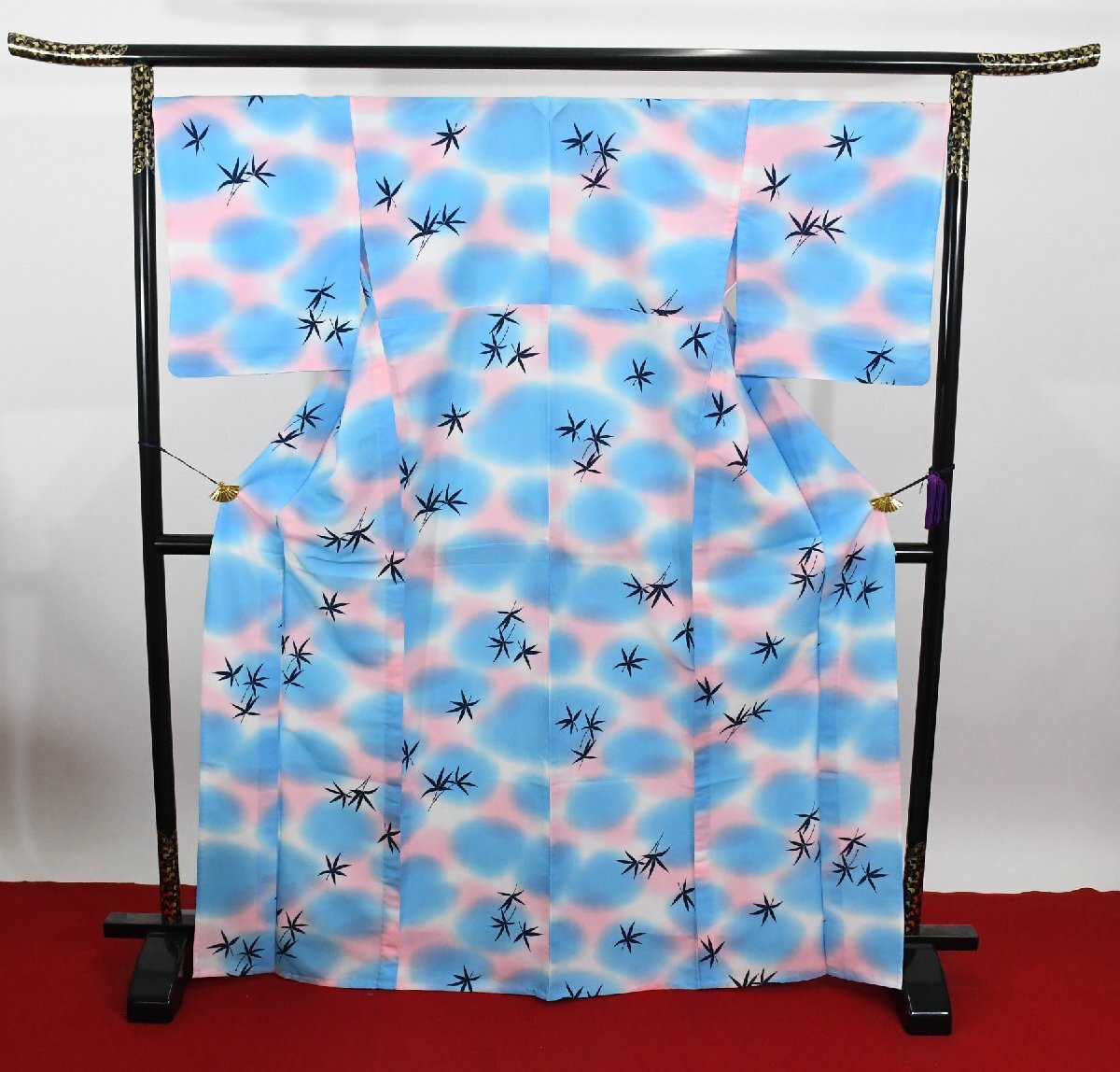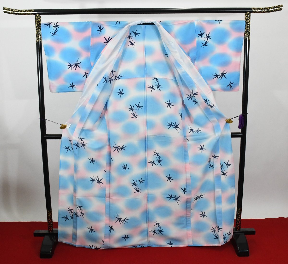サイズ | ▼身丈 (背中から) 161cm ▼裄丈 67cm ▼袖丈 49cm ▼後巾 30cm ▼前巾 24.5cm |