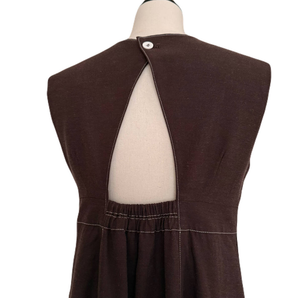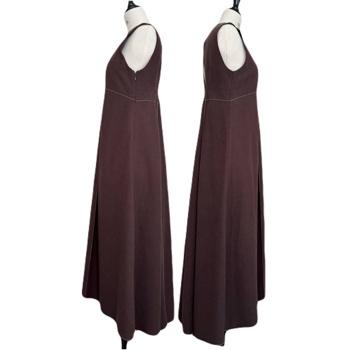 | ★ 商品名 ★ INella イネラ リネンミックスステッチワンピース ダークブラウン サイズ1 美品 リネン 麻混 ステッチ ノースリーブ ロングワンピース ★ |