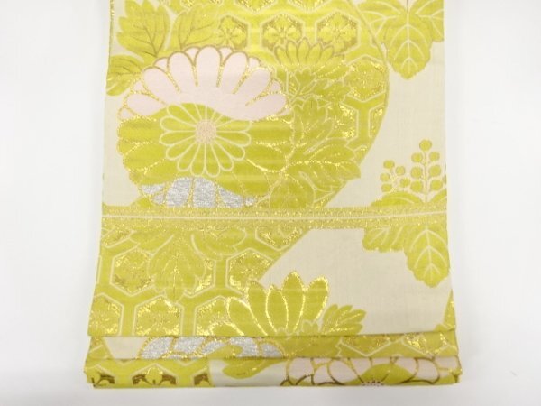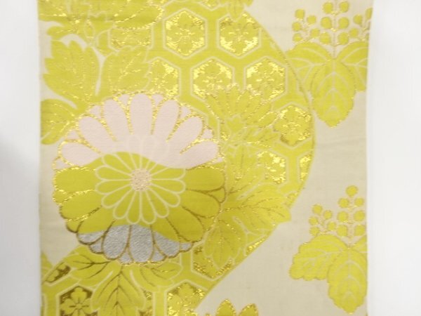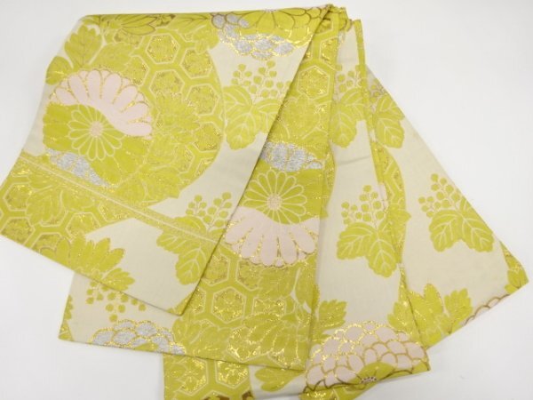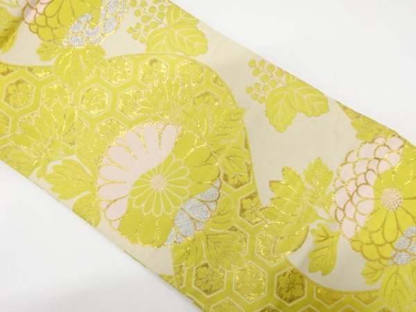 ys7405173; 流水に菊・桐・花亀甲模様織り出し丸帯(材料)【アンティーク】【着】