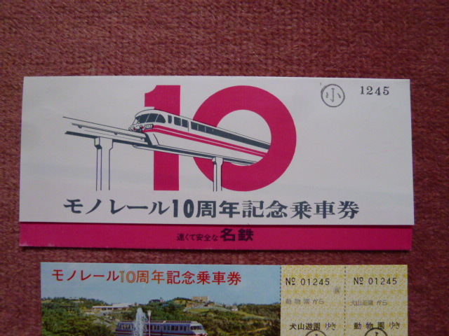 モノレール10周年記念(小人)乗車券(昭和47年3月5日発行)2枚1組です。