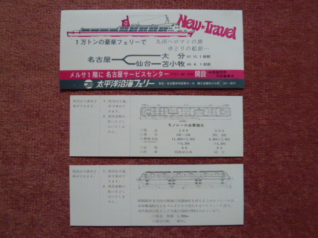 名鉄モノレール10周年記念[小人]乗車券2枚1組(昭和47年3月5日発行/太平洋沿岸フェリー/日立/跨座式/アルウェーブ式/犬山遊園⇔動動園)