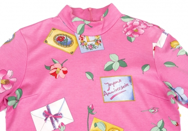 | レオナールLEONARD 総柄ハイネックトップス ピンクL |