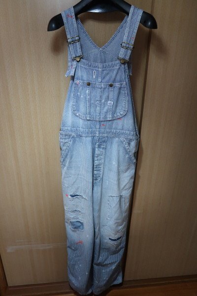 Lee リー LM7254 ダメージ加工 オーバーオール サイズ不明です、ウエスト約47×2cm 股上約73.5cm 股下約80cm 裾幅約24cmです、使用感もあまりなく良い状態です、ペンキなどの汚れ加工がしてある商品です、タグが切れておりサイズ不明です、発送は宅急便の送料元払いのみになります。