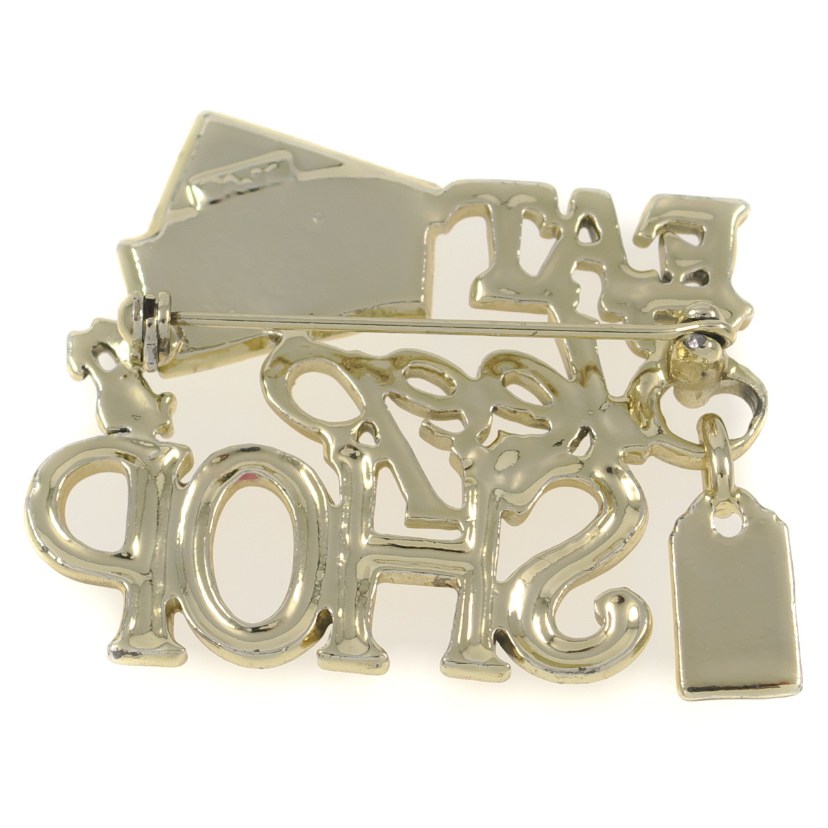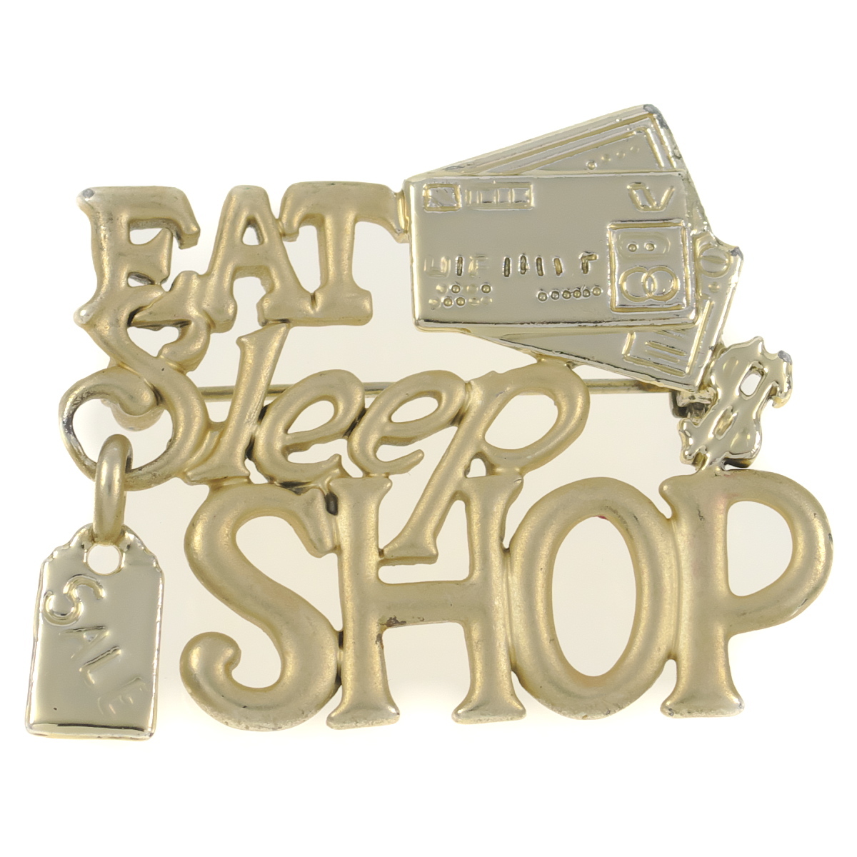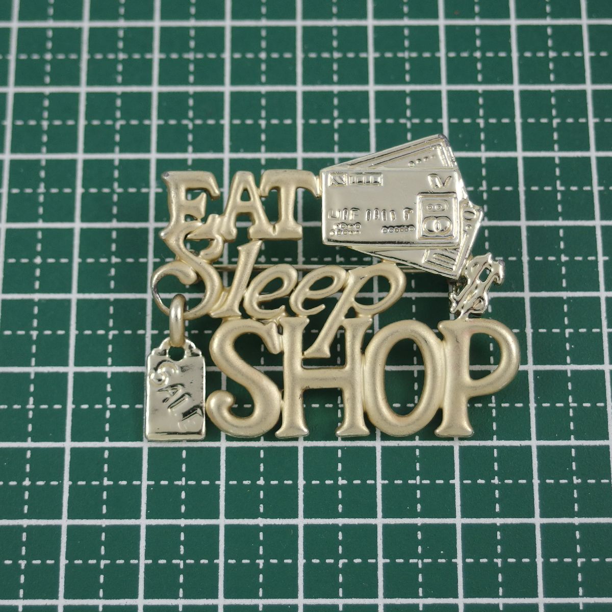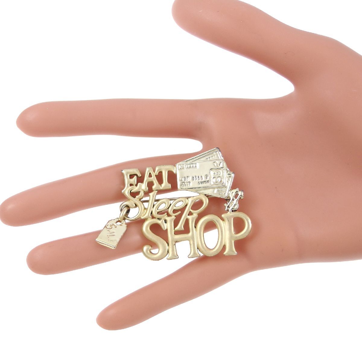 A10685◆【AJC】◆ EAT SLEEP SHOP ゴールドトーン ◆ ヴィンテージブローチ ◆