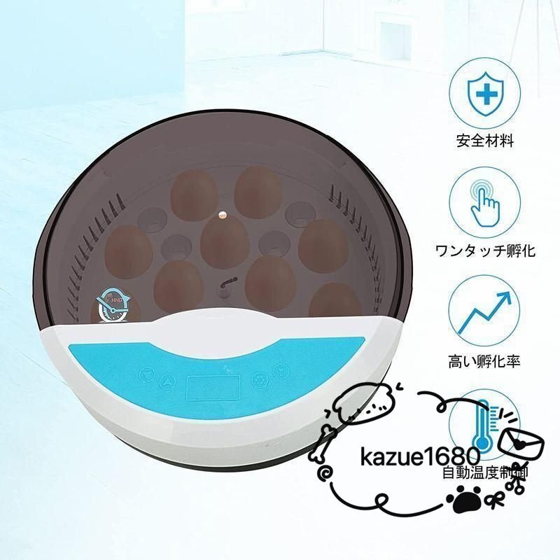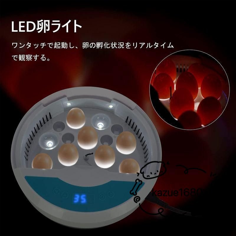 自動孵卵器 インキュベーター 入卵9個 鳥類専用孵卵器 検卵ライト内蔵 孵化器 鶏卵 アヒル うずら 子供教育用 自動温度制御 湿度保持