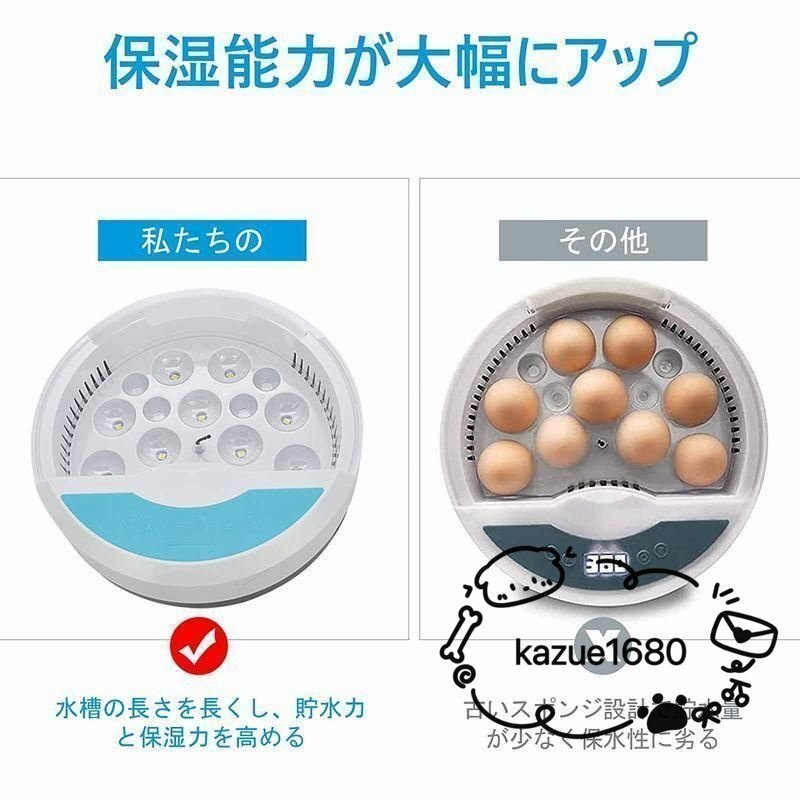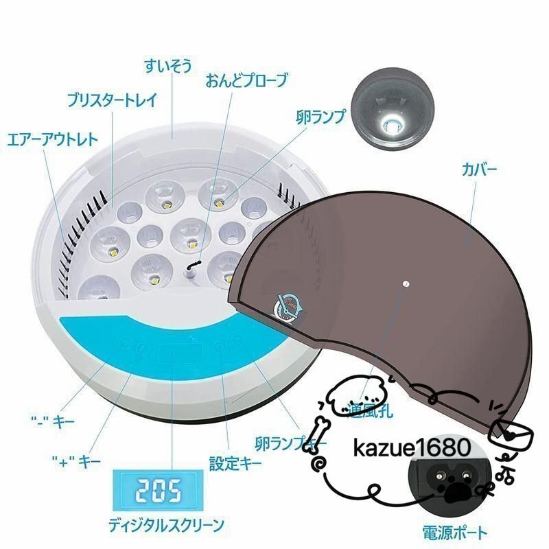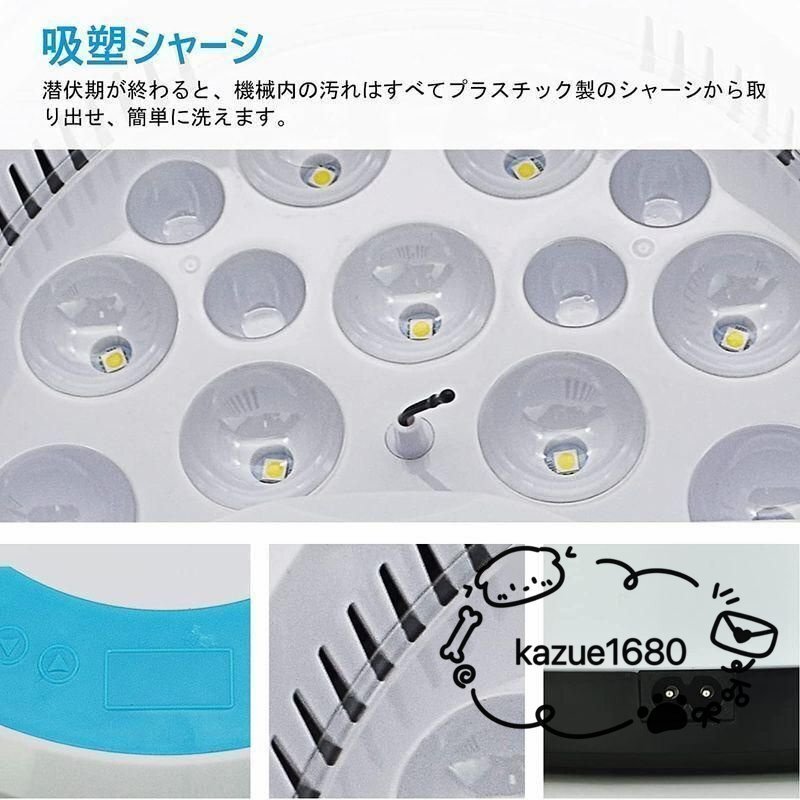 【検卵LEDライト付き】全体的な照卵ライトが搭載され、孵化中に全ての卵の発育状況を便利に確認でき、孵化のプロセスもよく観察できます。ライトボタンを押すだけで、中でヒナが成長する様子を観察できます。ご注意:孵化開始から最初の4日間は照卵をしないでください。 ・【温度/湿度制御】孵化器は温度湿度自動調節機能が備わったため、恒温と湿度を保つことができます。循環ダクトがある。孵卵器を使うことによって、誰でも簡単に適度な温度と湿度などを保てます。初心者向け一番の選択です。 ・【適用場所】孵化器はコンパクトタイプので、家庭、教育、実験室での観察にも適しています。子供たちは孵卵プロセス全体についてもっと学び、 【サイズ】 高さ : 12.00 cm 横幅 : 28.60 cm 奥行 : 28.80 cm 重量 : 880.0 g ※梱包時のサイズとなります。商品自体のサイズではございませんのでご注意ください。