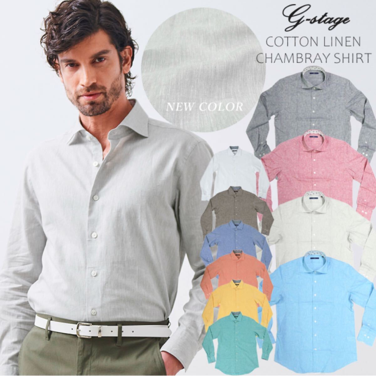 g-stage 【清涼 綿麻】シャンブレー 長袖 シャツ / 各サイズ