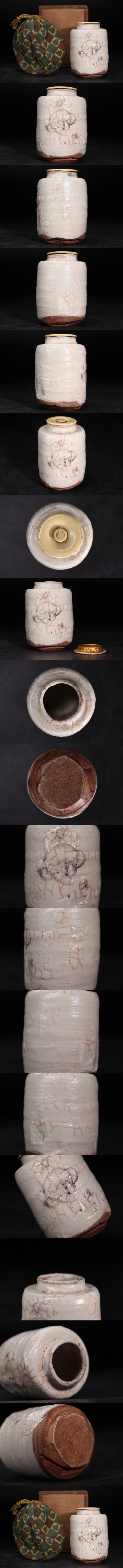 | 時代 絵志野 茶入 仕覆・木箱付 / 志野 古志野 茶壺 茶器 煎茶道具 煎茶飾 .G1593 |