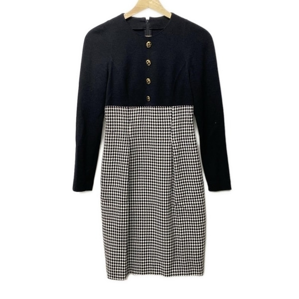 ディオール/クリスチャンディオール DIOR/ChristianDior サイズ7 S - ウール 黒×白 レディース 切り替え/千鳥格子/長袖 ワンピース