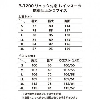 仕様 | はっ水 【上着】 ・両サイドポケット(右×1、左×1) 【パンツ】 ・裾の左右には調節用ボタンを装備 |