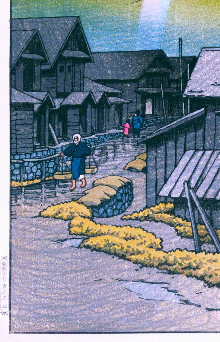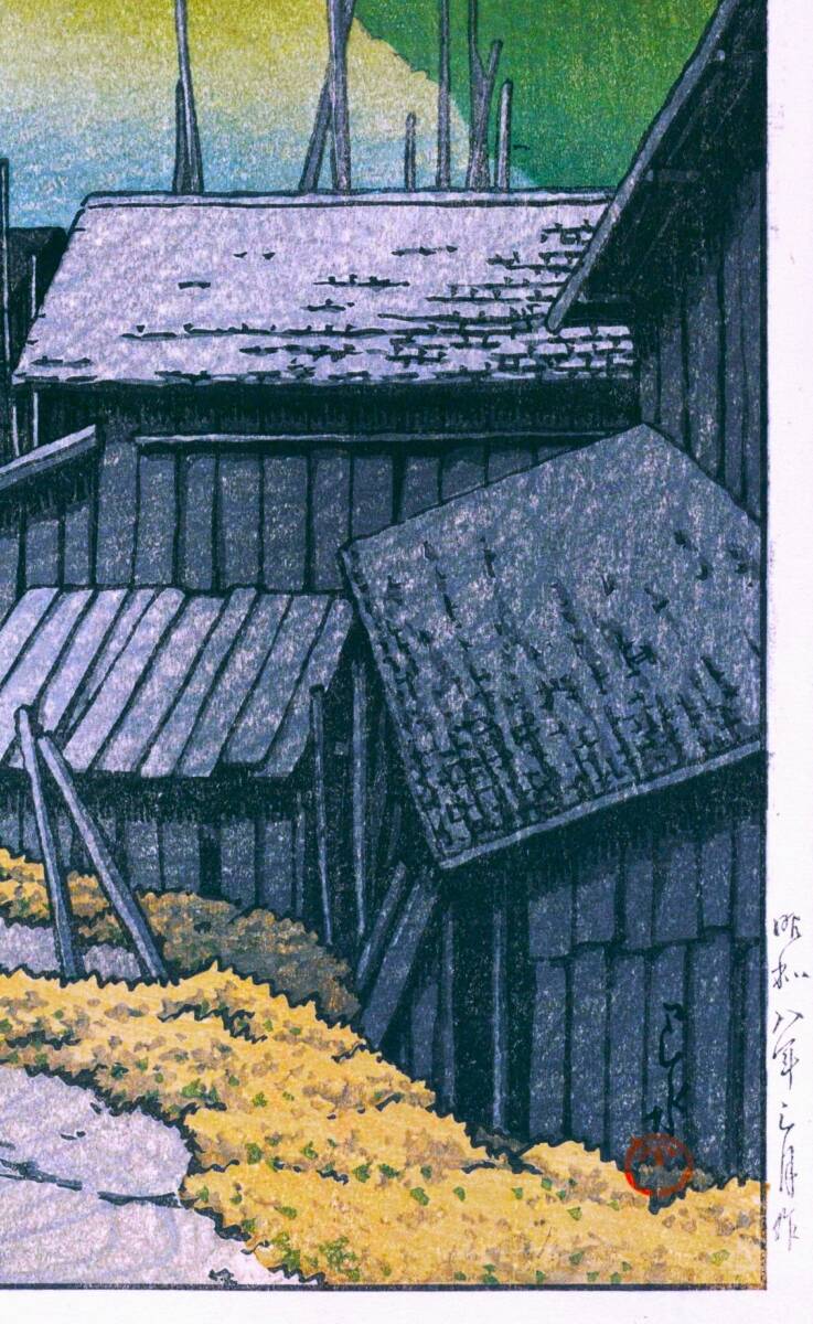 | ■商品説明■ | ■ 川瀬巴水 1作品(No491) 写真用マット紙厚口仕上 出品作品 「青森県蟹田」 ■サイズ 長辺 42.0cm×短辺29.7cm(マージン・余白含む) ■高画質写真マット紙 紙厚(mm):0.31 高級感のある質感、自然な白さで厚みのあるマット調の仕上がり。 発色も美しく細かい部分まで再現、高白色な写真用マット用紙。自然風景や建物を題材にした版画作品には特に効果を発揮。落ち着いたしっとり感。 ■印刷方式(無版式採用) 印刷方式は「有版式」と「無版式」の2種類に分類。印刷の際に「版」があるかないかに違いがあります。「無版式」は版を使いません。インクジェット等の方法で直接印刷。 ■ 作 者 川瀬 巴水(かわせ はすい、1883年(明治16年)5月18日 - 1957年(昭和32年)11月7日)は、日本の大正・昭和期の浮世絵師、版画家。 ■印刷 使用用紙 無版式・インクジェット 写真用マット紙 複製 ■観 賞 ご家庭で額装観賞する場合、作品より大き目の額縁(作品サイズより縦横それぞれ7センチ程度以上)を選んでマット額装すると作品が映えます。 ■価 格 価格もお手頃な設定にしています。真筆ではございませんが和洋室問わずインテリアの人気作品としてお楽しみ頂けます。 ■画 像 掲載の画像はお手元のパソコンモニター等の設定により、お届け品とは多少の印象差を生じる場合が御座います。 ■発送等 定形外・規格外郵便(出品者負担) 入金確認後1〜2日以内(月~金曜日)日中の発送手配となります) ■受取等 お互いの信頼のため到着後24時間以内にお願いいたします。 |