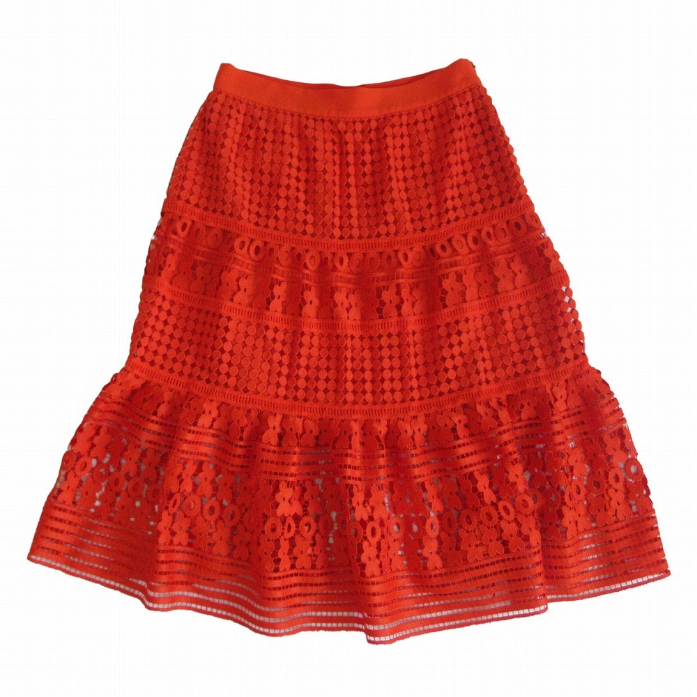 | 【DIANE von FURSTENBERG ダイアンフォンファステンバーグ TIANA SKIRT フラワーカットワークレース ミディスカート サイズL】 | |