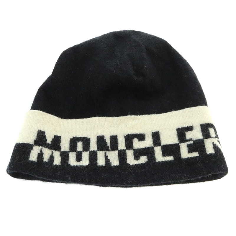 モンクレール MONCLER ロゴ ニット帽 ウール M 黒 ブラック 白 ホワイト /SR13 キッズ
