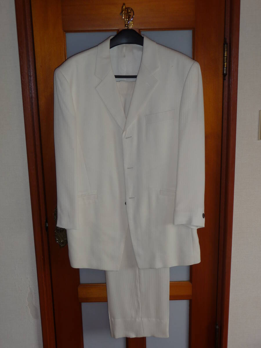 BIZARRLA ビザリア メンズ メンズスーツ 50 ストライプ柄 シングルスーツ ホワイト ステージ衣装 舞台衣装 カラオケ 司会