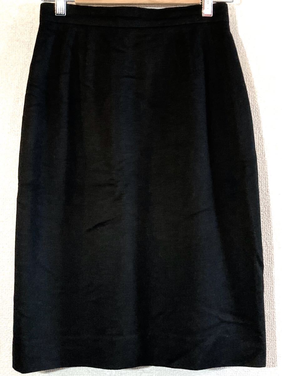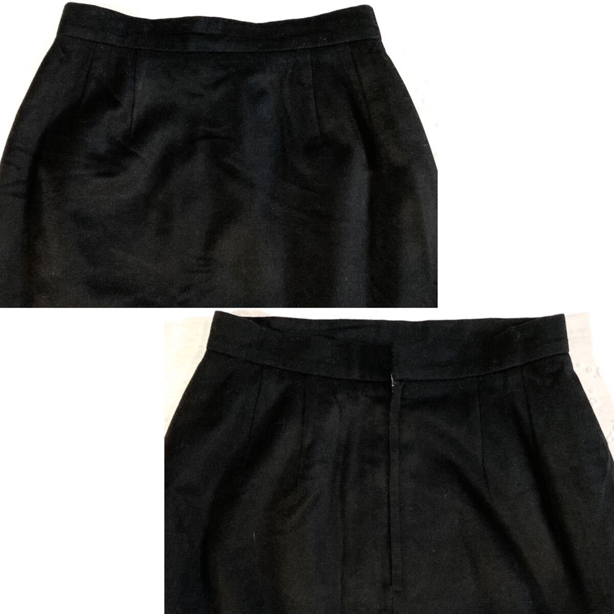 ブラックカラーのウール生地でできたスカートでシンプルなデザインになっています。