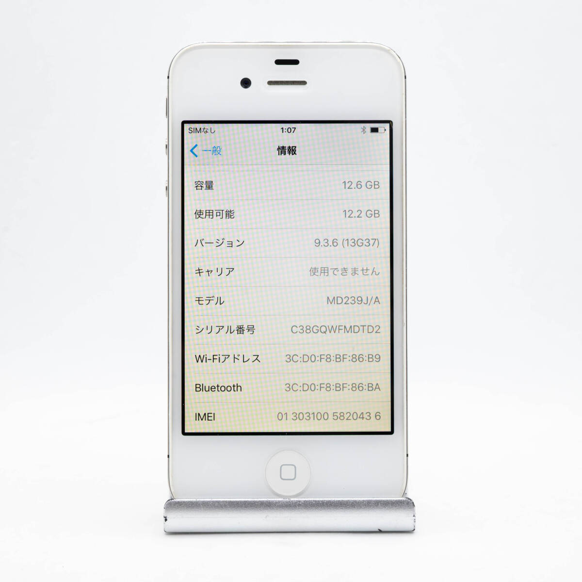 メーカー:Apple 機種/型番:iPhone 4s (A1387) 容量:32GB IMEI:013031005820436 通信キャリア:SoftBank(判定〇) アクティベーションロック:OFF バッテリー最大容量:約80% 付属品:なし 備考: 初期化済みです。通電や物理ボタン類の簡易的な確認のみ実施しております。 発売から年数が経過している機種のため、現状品扱いとなります。動作等の保証はいたしかねます。 ※点灯した画面を撮影した商品写真にはモアレという網目状の模様が写ることがあります。この模様は商品の不具合ではなく、肉眼では見えません。 |