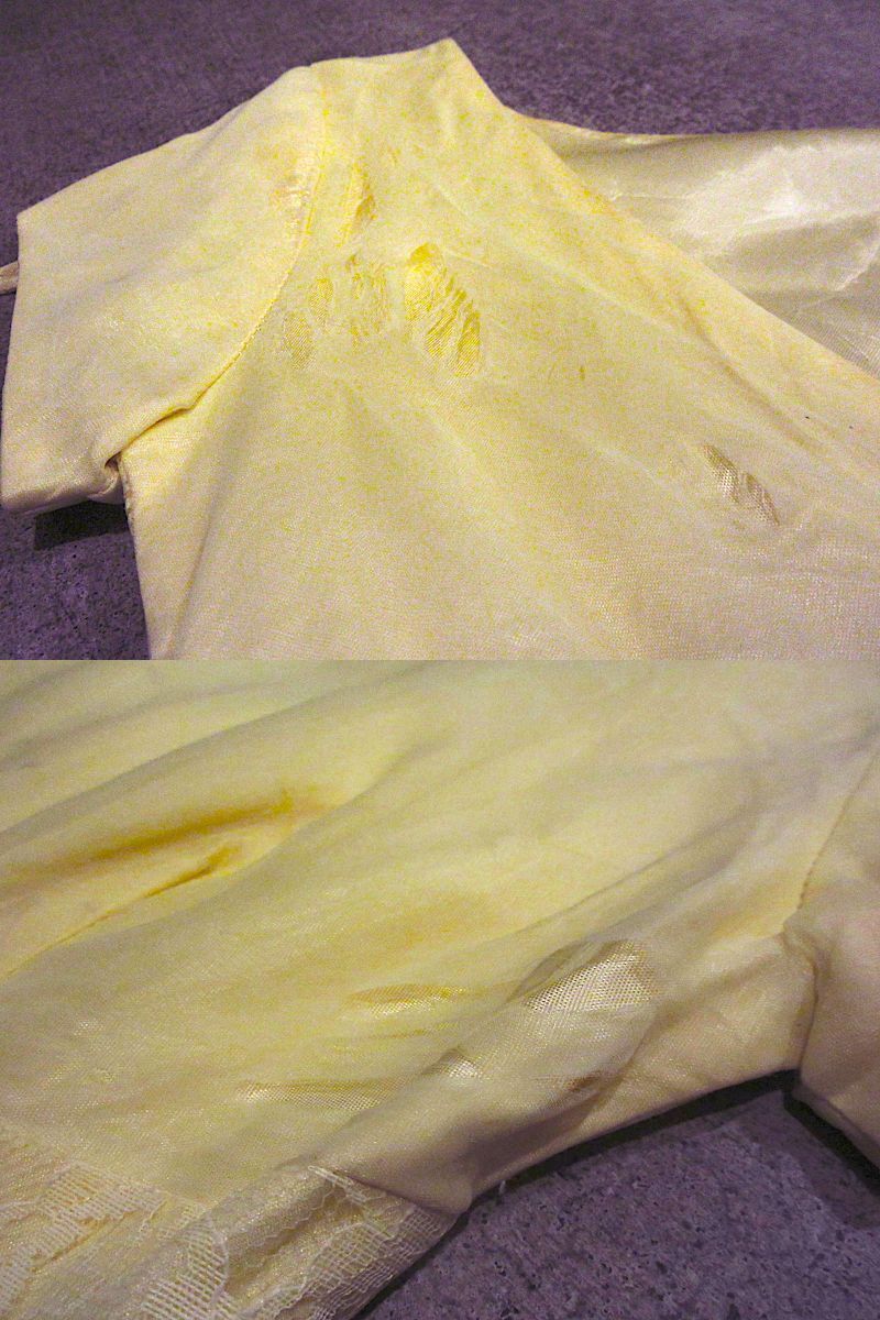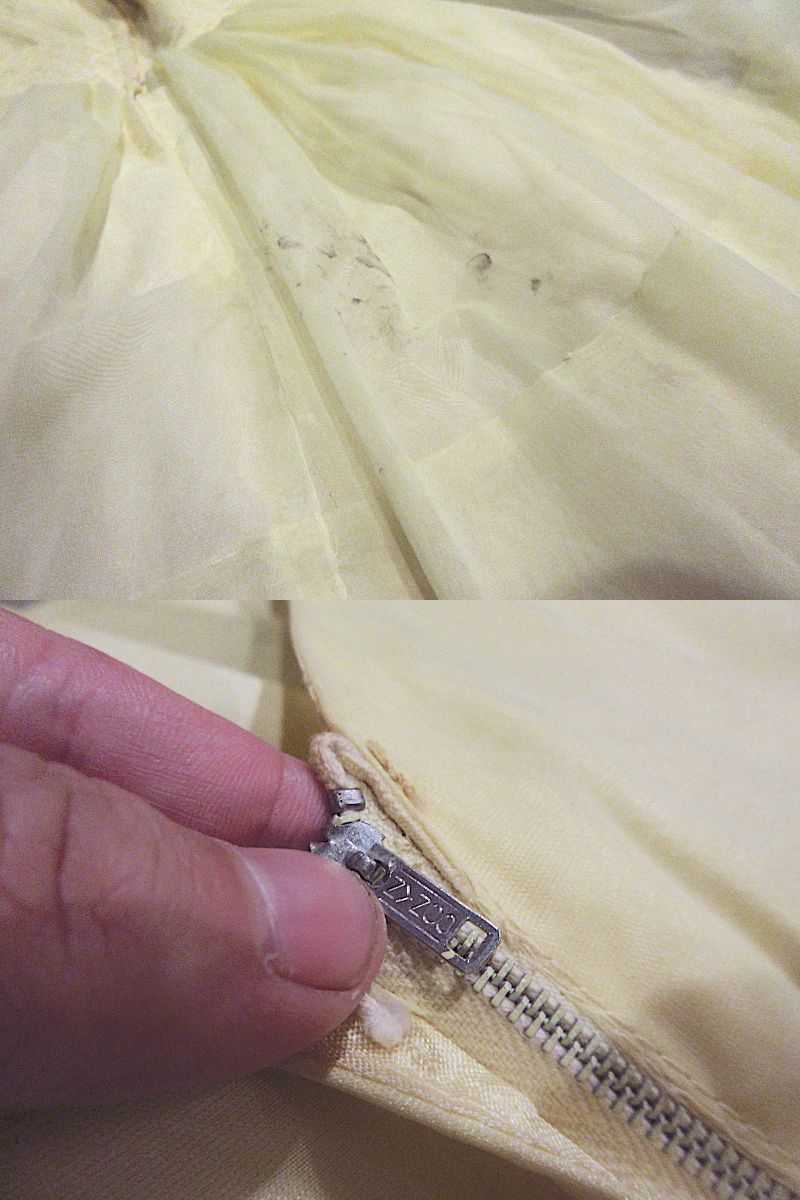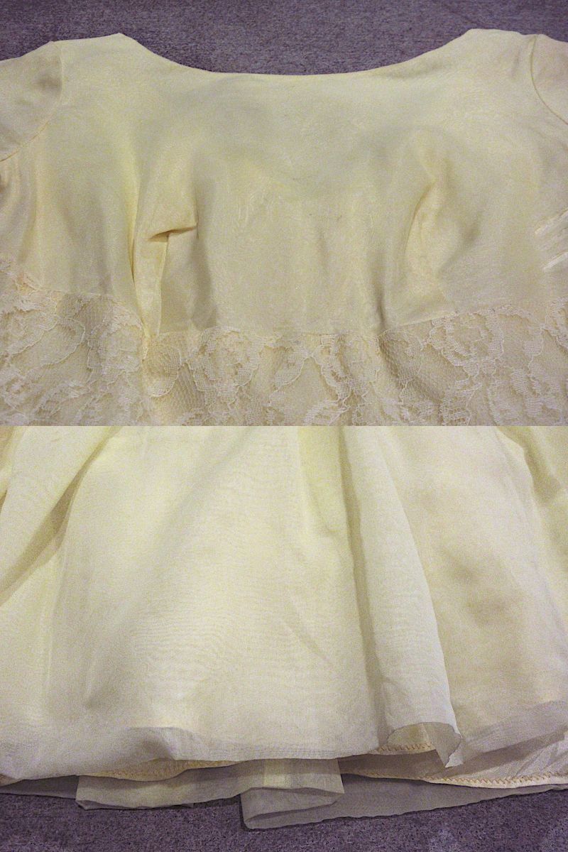 1960'sレース刺繍付き 半袖ワンピース 黄