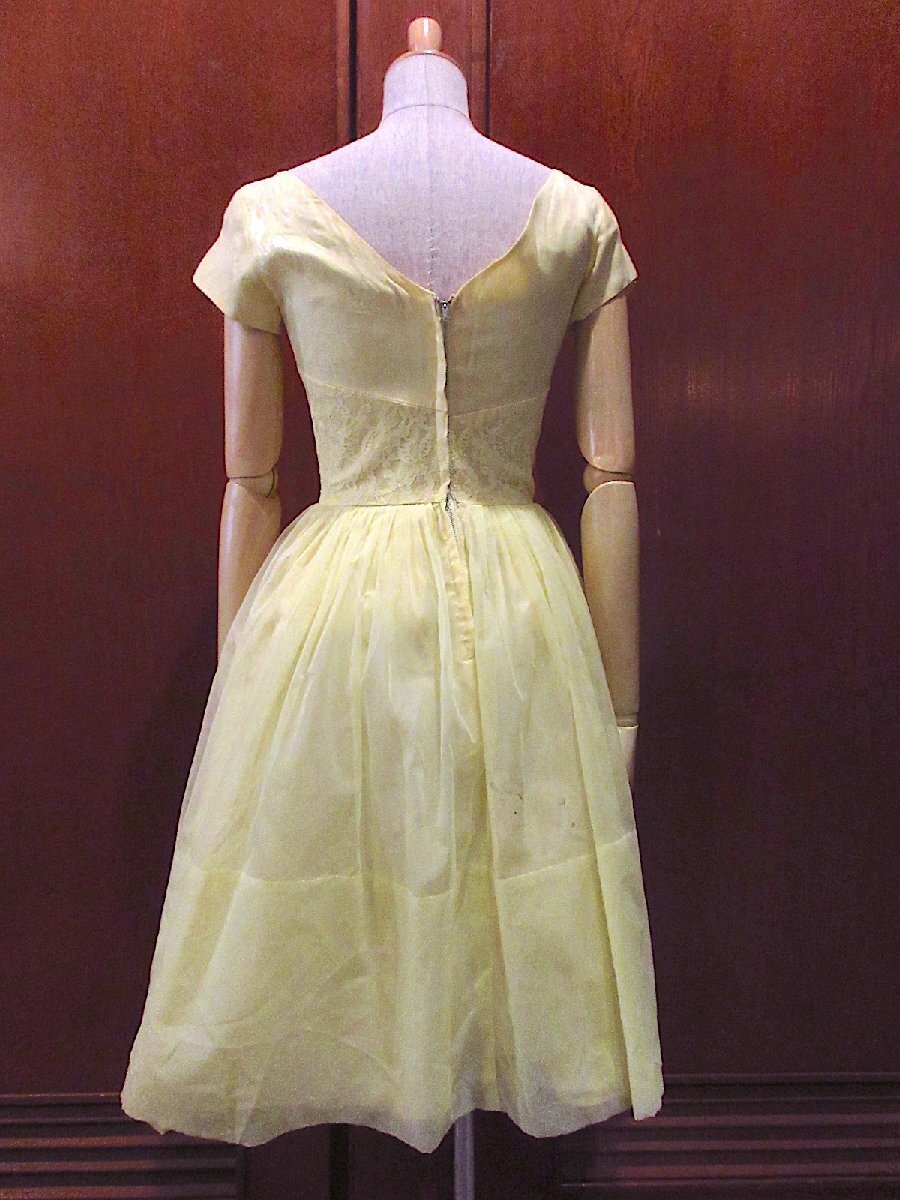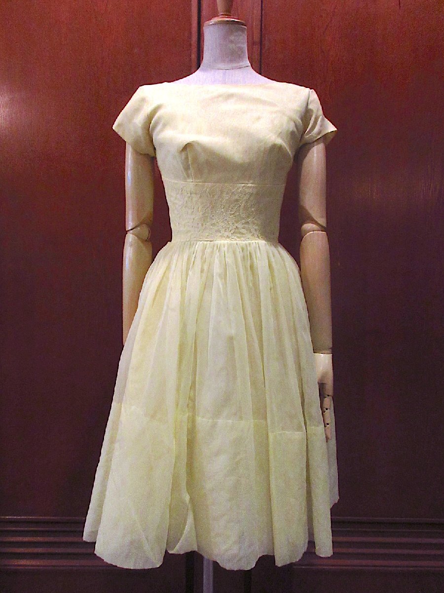 ビンテージ60's●レース刺繍付き半袖ワンピース黄●250526m6-w-ssdrsドレスレディース古着