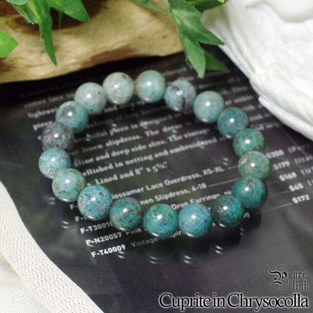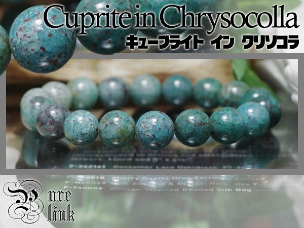 希少な『キュープライト』ですが、元々『クリソコラ』と一種に産出されることもあり、その割合、見た目によって、『ソノラサンライズ』『クリムゾンキュープライト』など呼び名も変わり、より希少なレアストーンとして流通しているのですが、今回のように『キュープライト』が斑点状なものはより珍しく、また『クリソコラ』だけでなく『シリカ』も混ざり合っている、ほとんど見る事はないとても珍しいレアストーンだと思います。(*´▽`*)