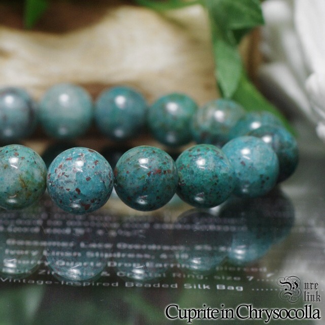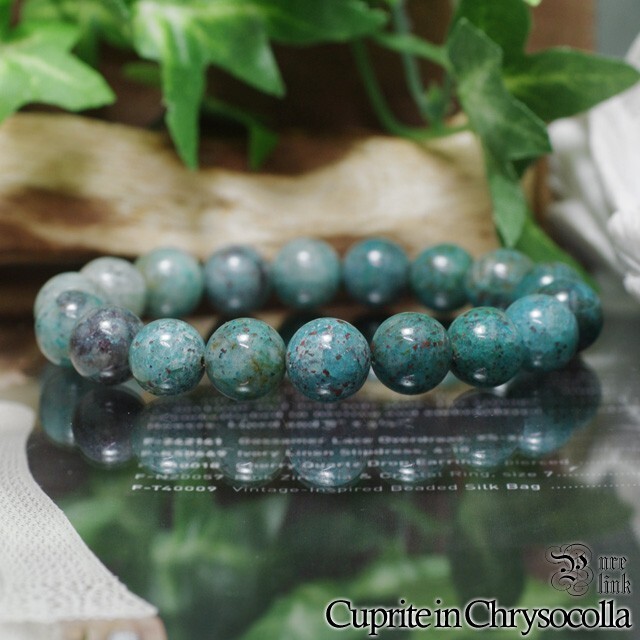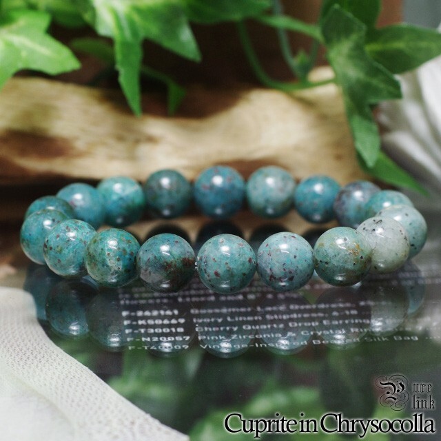和名:珪孔雀石・本来の純粋な色は青のようですが単独では余り見ることが無く銅を含み、青、青緑、緑の混ざる石です。男性がつければかっこよく、女性がつければ綺麗な感じのでる不思議な色合いの石です。繁栄、幸運、仕事の成功を象徴する石と言われ情緒を安定させて、何事にも愛を持って対応できるように導く力があるといわれているそうです。また、美的感覚に訴える力が強く、芸術関係に携わる際に持つと良いとされているそうです。