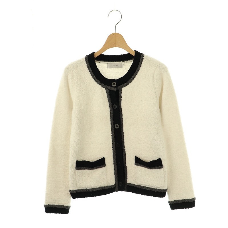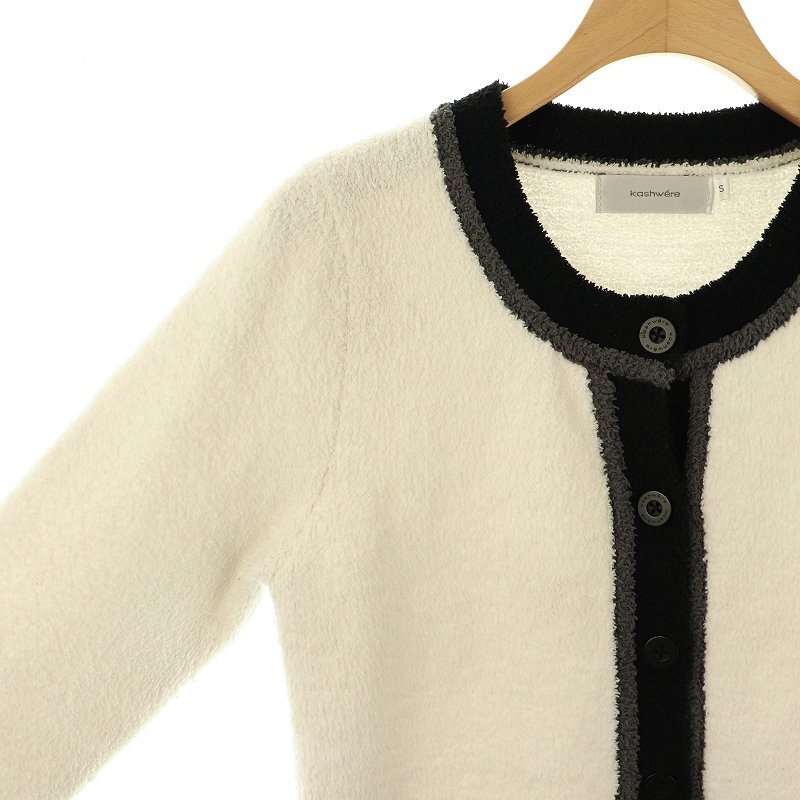 カシウェア kashwere ラインデザインクルーネックカーディガン ニット S ホワイト /DF ■OS ■SH レディース