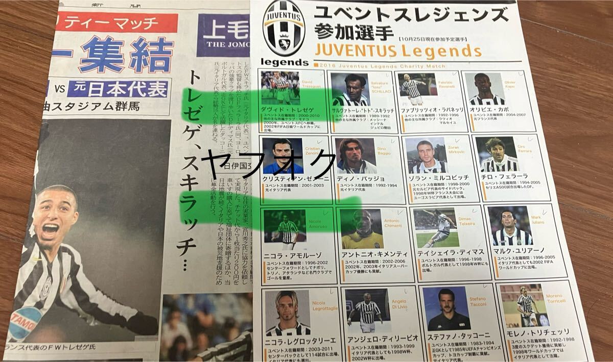 サインは2016年にあったユベントス、レジェンドマッチの試合前日公開練習と試合当日のバスの出発で頂きました。スキラッチだけペンを替えて二カ所にサインが入っています。