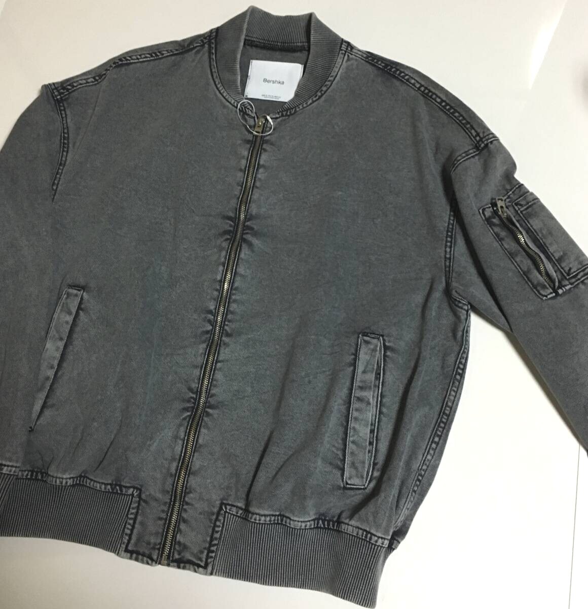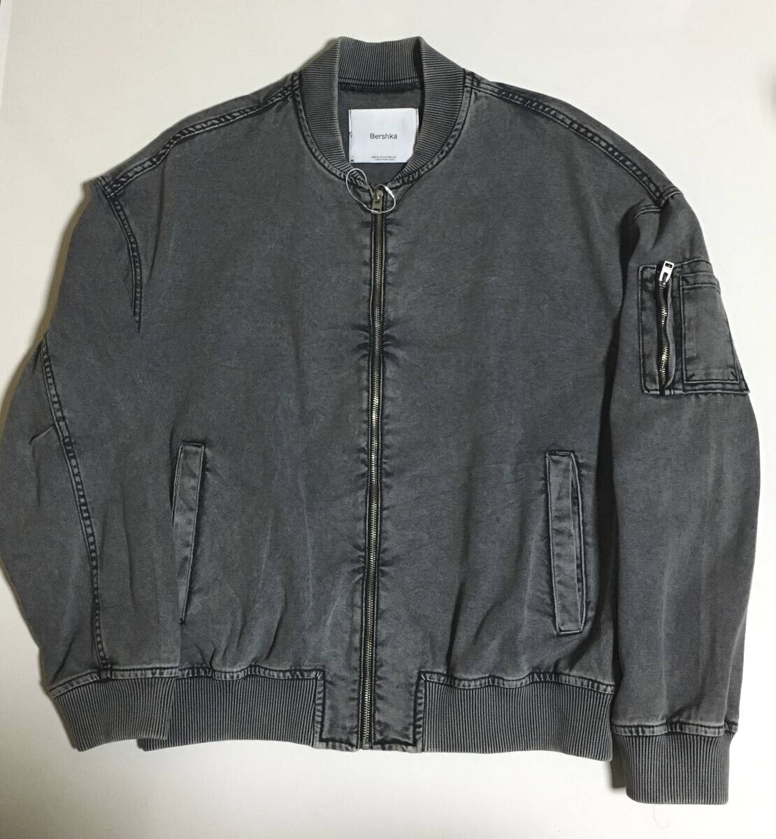 Bershka アシッド デニム ボンバー ジャケット XL 新品 BLACK ベルシュカ Acid Wash DENIM BOMBER JACKET ma 1 ブラック 黒 オーバーサイズ BLOUSON